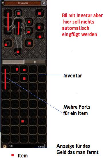 Also ich habs das es verständlicher ist ein Bild angehängt. Die Roten Punkte sindItems die Roten striches sind auch Items aber es können längere sein also Drei Plätze und ein Item.