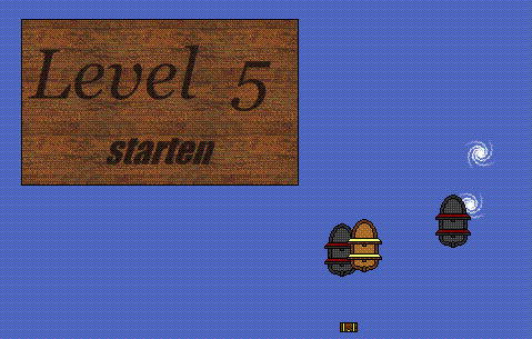 Du steuerst Dein Schiff mit den Pfeiltasten. Nach jedem abgeschlossenem Level wird das Spiel gespeichert.