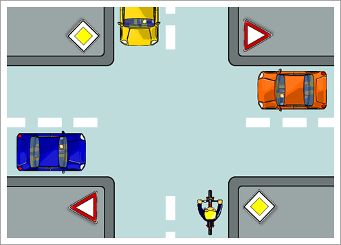 da is ne kreuzung und es kommen autos und man kann sie bremsen oder verschnellern und es darf kein unfall geben""