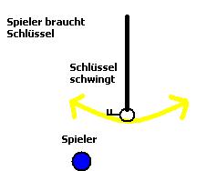 • du kannst ein sprite machen mit 2 subimages. Auf dem einen subimage ist der schlüssel mit dem seil und auf dem 2. nur das seil. dann machst du den sprite-origin auf das obere ende vom seil. die bounding box legst du dann genau über den schlüssel.