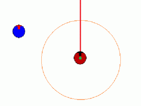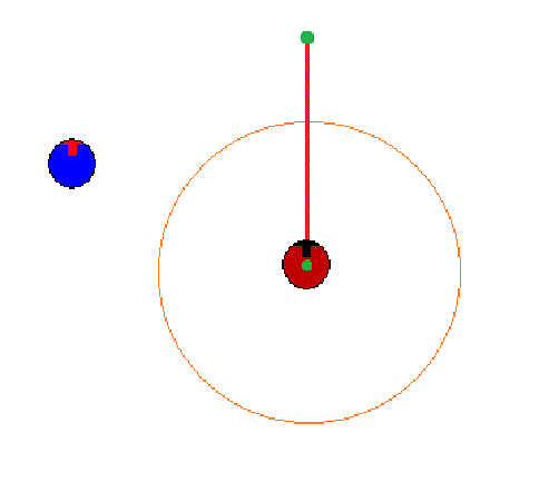 Der blaue Punkt ist der Player und der orangfarbene Kreis ist praktisch der Rotationsradius.