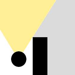 Hierbei ist der Ball der Player, das schwrze Viereck eine Wand und das gelbliche das Sichtfeld des Players. Was ich brauche ist etwas das den Grauen Part "berechnet" und ihn komplett schwarz färbt.