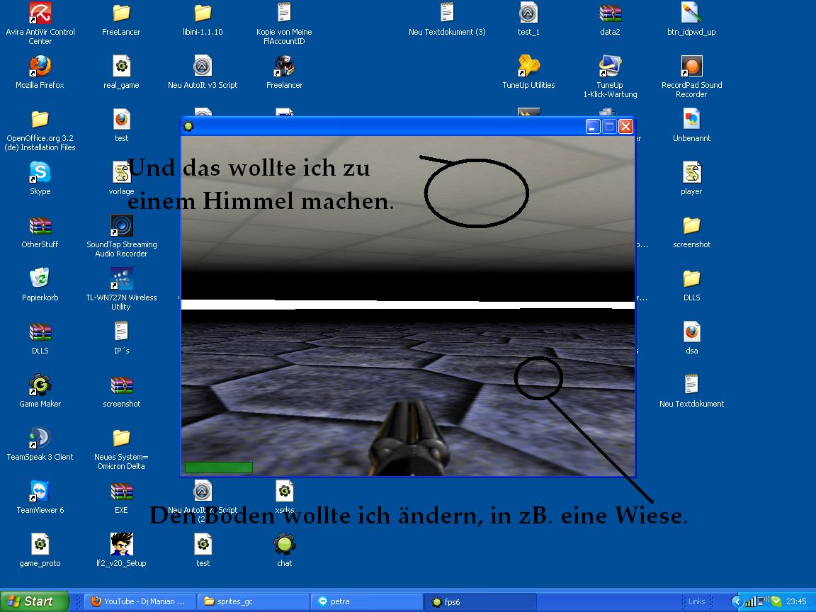 Nun wollte ich etwas mehr Style in die Welt einbringen und zwar, wollte ich einen Garten um das Haus basteln, nur jetzt komm ich zu meinem Problem, ich hab schon mehrmals versucht den Boden und den Himmel zu ändern, aber bisher ohne Erfolg.