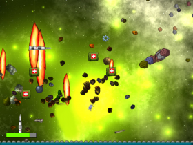 Allerdings ist der Schrott nicht das Einzige, was den Weltraum so bevölkert: da gibt es noch Galaxien, Meteoriten, Außerirdische aller Arten und anderes. Manche Aliens sind Dir übrigens freundlich gesinnt - solange Du sie nicht angreifst! Manche jedoch sind alles andere als freundlich... Manche lassen sich ziemlich einfach ausschalten, andere wiederum nicht. Einige sind wesentlich beweglicher als Dein Raumschiff, aber fast alle sind langsamer als Du...