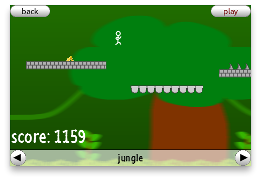 Renne so weit wie möglich ohne herunterzufallen oder die Stacheln zu berühren. Dabei wird man jedoch immer schneller. Durch Bananen wird man wieder langsamer. Doch Achtung, ist man zu langsam schafft man nicht mehr alle Sprünge oder die Fallendenblöcke sind schneller.