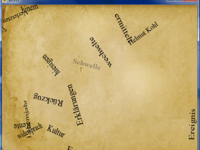 Bedienung: Es erscheinen nach und nach Wörter auf einem Blatt Papier. Diese wandern, biegen sich und rotieren.