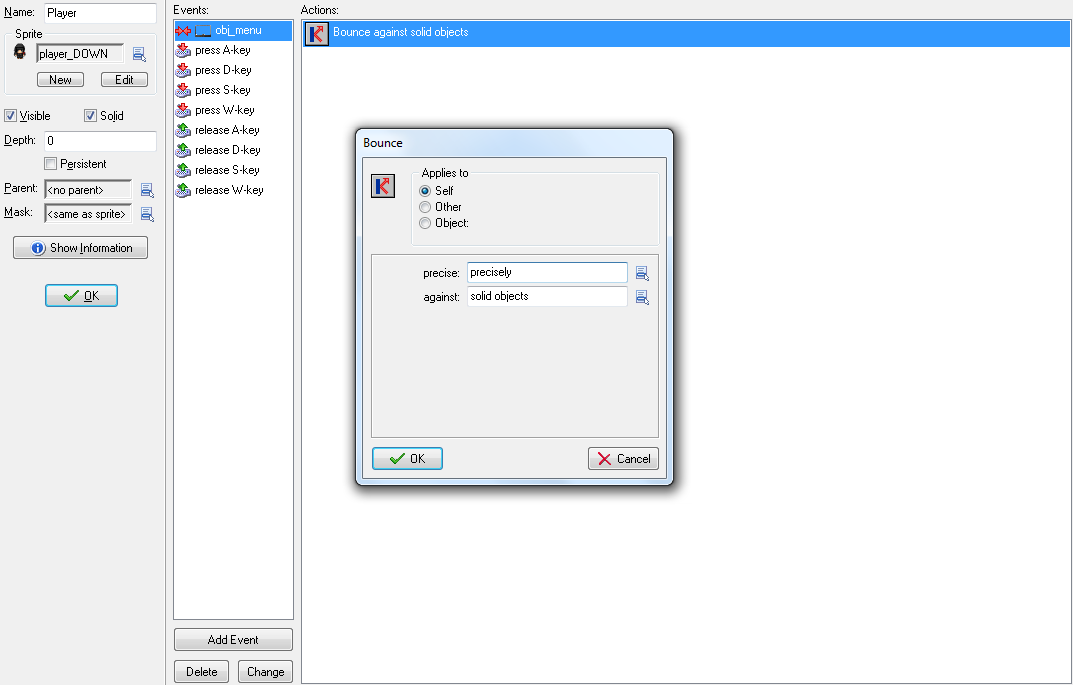 Damit du es nicht bei allen Richtungen hinein schreiben muss, erzeuge ein neues Player-Objekt mit den Namen z.B obj_Player