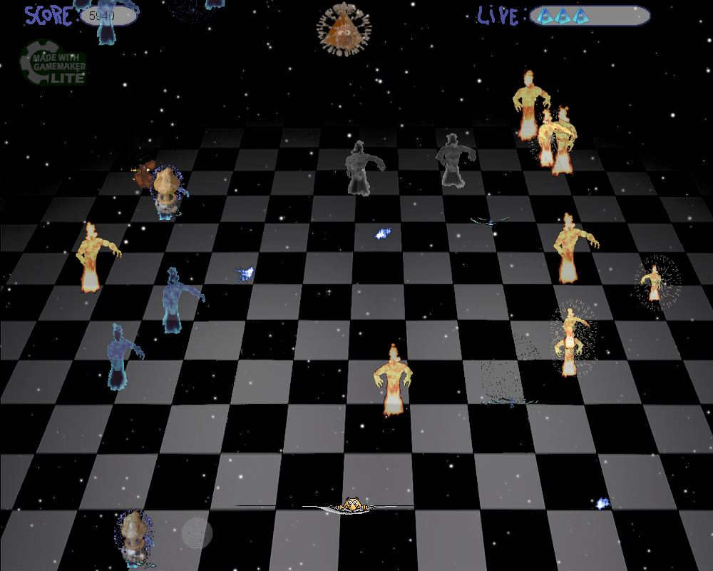 Natürlich bin ich auch gerne bereit das Spielprinzip noch mit guten Ideen aufzubessern. Grundlegend ist erstmal: 4Gegner die sich auch selbst bekriegen. Du hast 4.Schussarten, die unterschiedliche Reaktionen bei den Gegnern hervorrufen. Nicht nur Zerstörung!! In erster Linie soll es ein Ballerspiel sein (Highscore) aber auch durch Strategisches Verhalten/Denken verlangen!