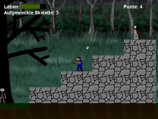 Es ist ein kleiner Platformer mit 16 Leveln, bei dem man verschiedene Feinde, die zu Halloween passen, killen und Tote aufwecken muss.