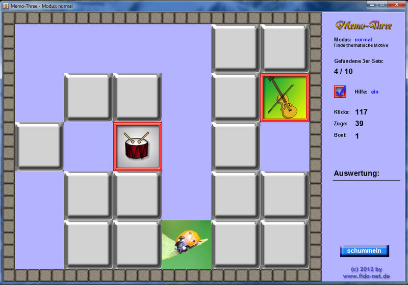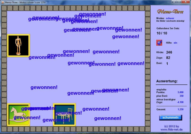 Und was ist mit dem Modus "schwer"? Ganz einfach: hier wechseln die Bilder während des Spieles heimlich. Zwar nicht ihren Platz, aber immerhin ihr Aussehen.