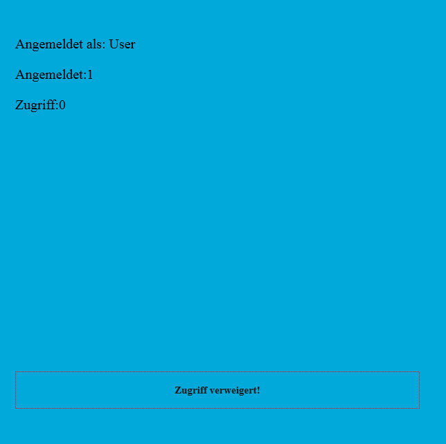 Wenn ich mich als einlogge, werden die Zugriffsrechte überprüft: $_SESSION['userzugriff'] und es wird überprüft, ob man eingeloggt ist: $_SESSION['angemeldet'].