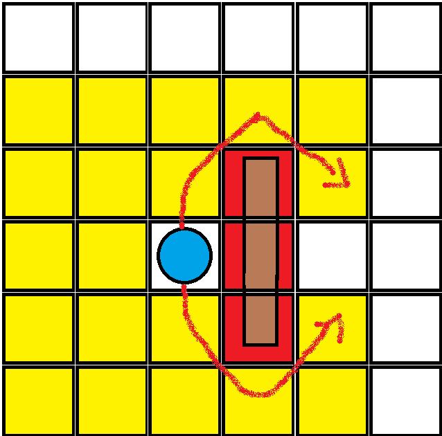 1. Anzahl Zellen in y-richtung zwsichen Objekt und dessen Ziel berechnen.