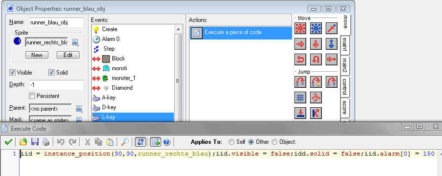 Meisnt du ich soll zuesrt iid = instance_position(runner_blau_obj.x+30, runner_blau_obj.y+30,Block);iid.visible = true;idd.solid = true im creation event vom player schreiben?