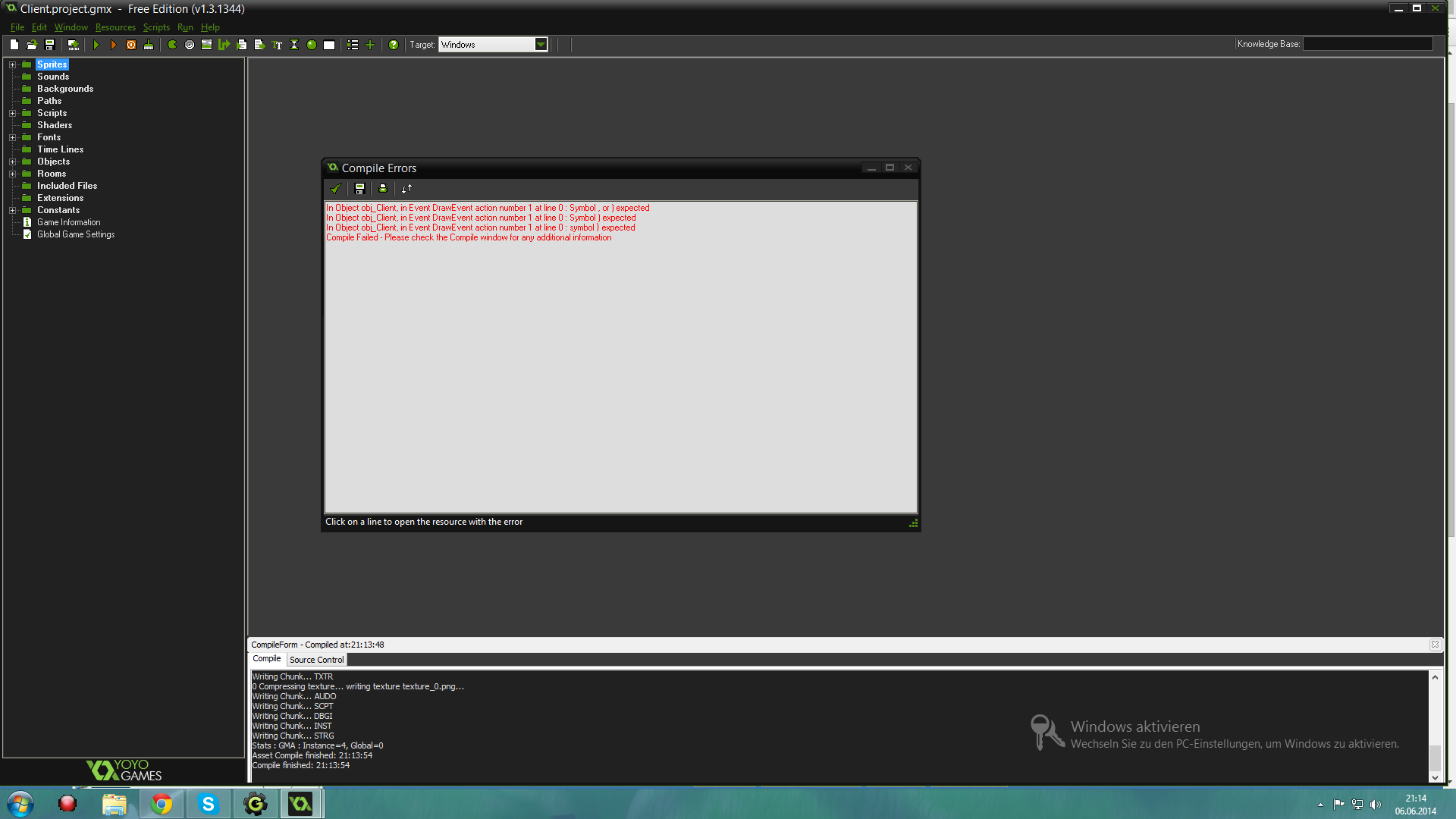 In Object obj_Client, in Event DrawEvent action number 1 at line 0 : symbol } expected