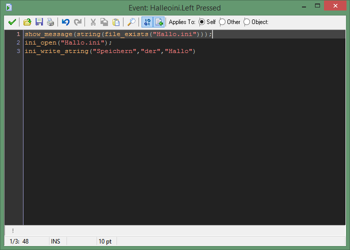 Wenn alles eigentlich korrekt abläuft kann es sein das du auf einen Studio Bug gestoßen bist (in meinem Game Maker 8 funktioniert der Code richtig), möglicherweise versucht du mal etwas in die INI zu schreiben (ini_write_string) um zu sehen ob die INI-Funktionen korrekt funktionieren.