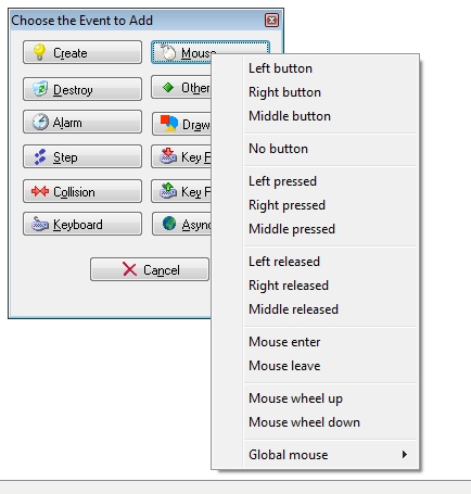 Ich würde gerne mein Gamepad (Speed Link ThunderStrike) bei Game Maker benutzen, aber wenn ich einem Object die Joystick-Steuerung zuordnen möchte, erscheint bei "Add Events/Mouse" erst gar nicht die Option "Joystick", nach "Global Mouse" ist die Auswahl einfach zuende (s. Bild im Anhang).