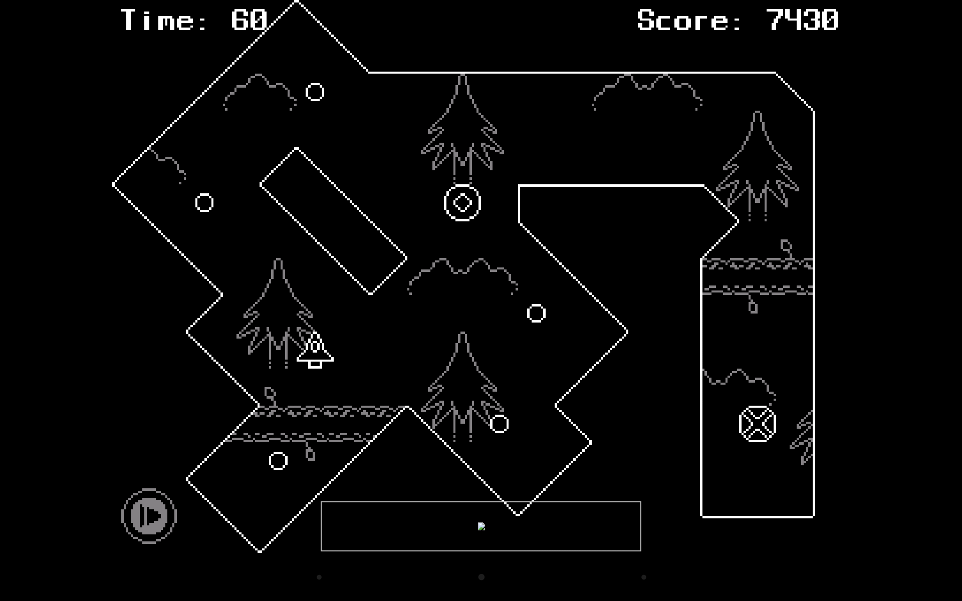 Es ist ein Arcade-inspiriertes extrem schweres Spiel. Mach manöviert ein Space Shuttle von Punkt A zu Punkt B, muss aber bevor man da ankommt die ganzen Punkte einsammeln, die das Ziel entsperren. Dabei darf man nirgendwo anecken, sonst muss man das Level erneut versuchen. Sehr einfaches Spielprinzip, jedoch sehr fesselnd.