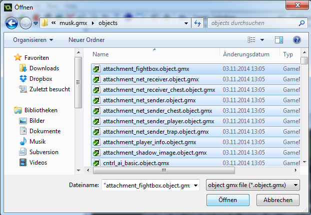 Wie schon erwähnt: ich würde zuerst versuchen eine alte Version der *.gmx Datei wiederherzustellen, nachschauen ob alle Dateien des Projektes noch da sind und nicht seltsam von Dropbox umbenannt wurden aufgrund von Kollisionen - und wenn es das nicht tut oder du es nicht hinbekommst, einfach alle Ressourcen wieder manuell hinzufügen (wenn sie denn da sind).