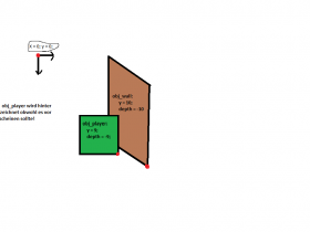Aber die Mauer wird nicht richtig gezeichnet, so wird sie vor dem Player gezeichnet wenn er in der linken unteren Ecke der Wall steht, obwohl sie eigentlich hinter ihm sein sollte.