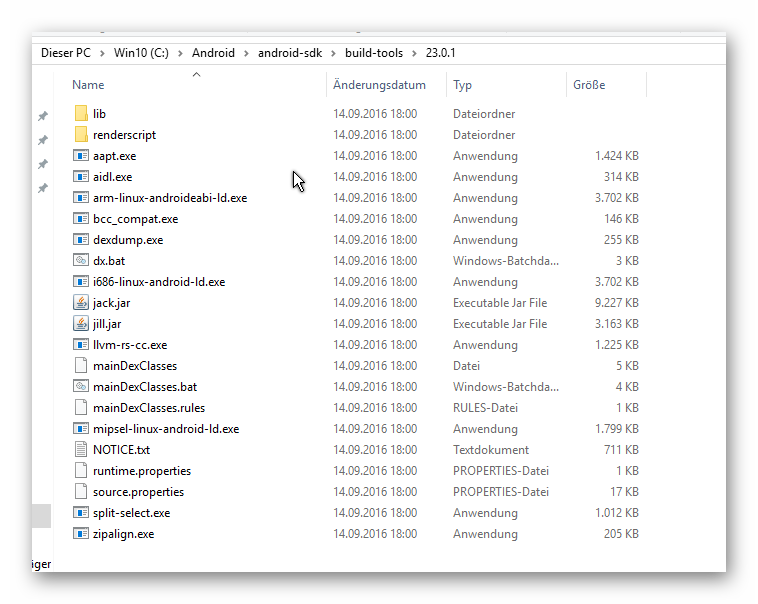 habe ich auch die Tool's wo für Android gebraucht werden neu installiert.