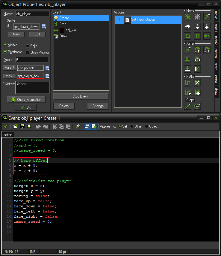 Version 2 - mit einem Array / ds_grid, Objekte werden irrelevant. Alle Koordinaten werden auf ein 1 x 1 Raster geschrumpft, gezeichnet wird aber noch auf dem 16 x 16. Kollisionschecks werden einfacher auszuführen und sparen an Performance. Potentielle Level-grösse wird vervielfacht.