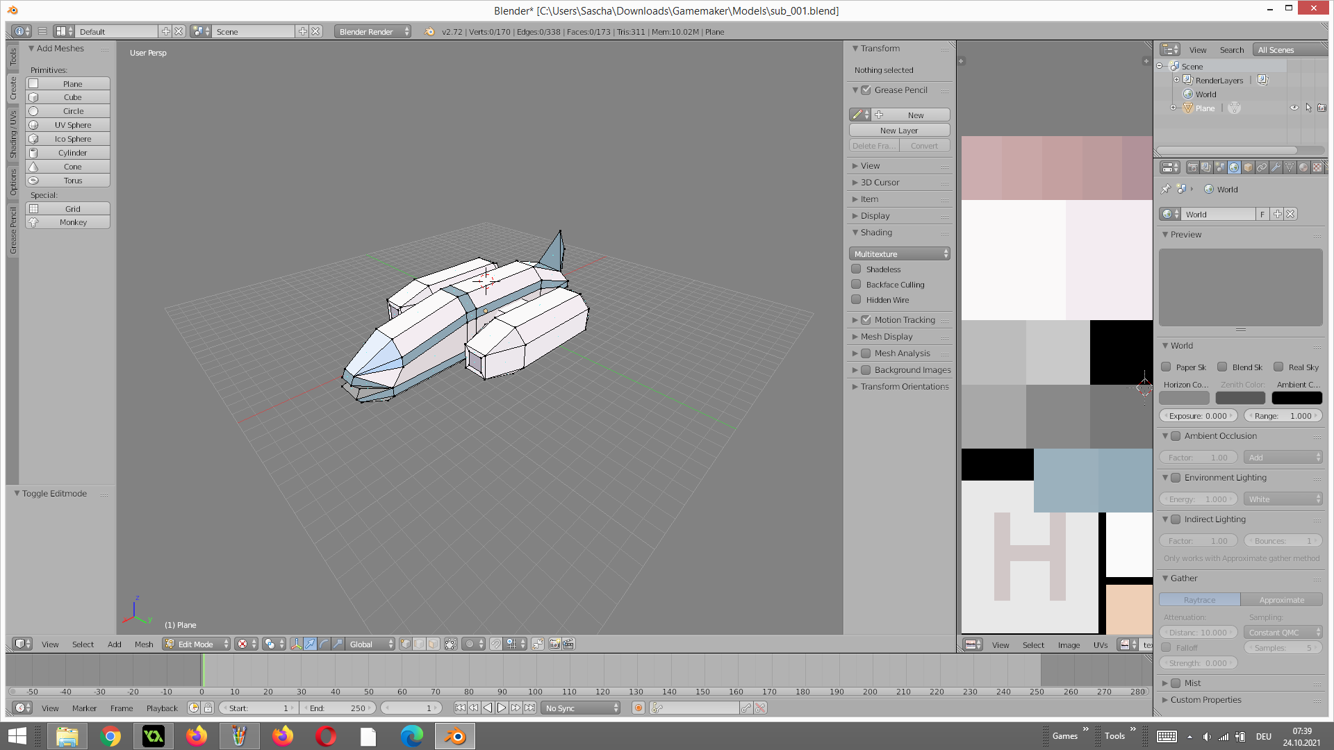 Nach dem ich Blender auf meinem Hauptrechner richtig eingestellt habe um 3d Model als Obj Format zu Exportieren um sie hinter her zu d3d zu Konvertieren. Hab ich euch noch ein Test Objekt in das Programm.
