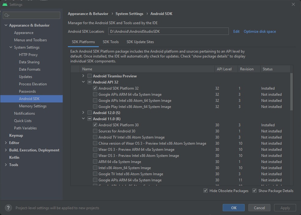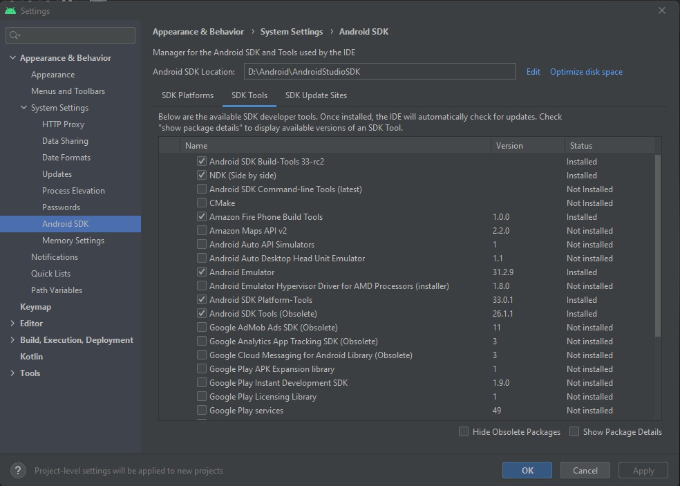 Installationspfad: D:\Android\AndroidStudio