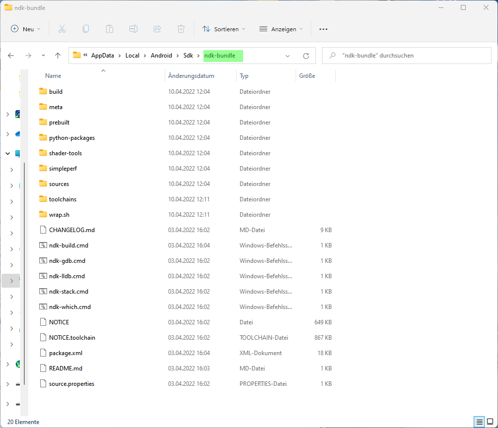 Folgende SDK/NDK Dateien installiert.