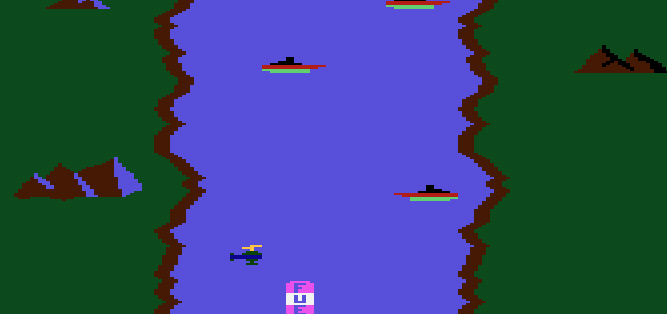 Auf dem Wasser fährt ein Schiff. Sobald es links oder rechts an das Land rankommt soll es zerstört werden.