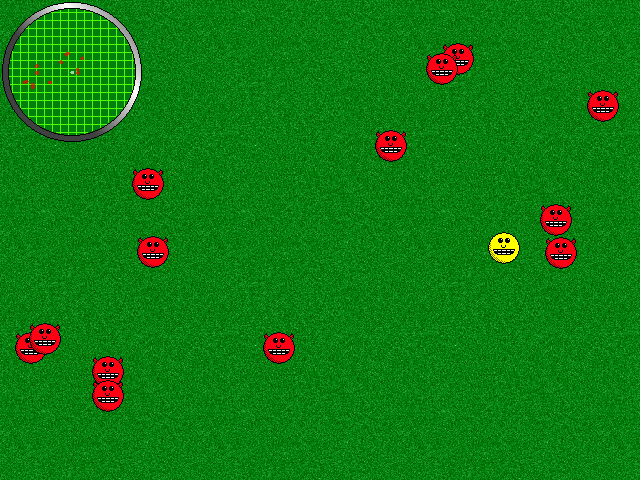 Nun noch das Script ins Draw Event des Controller Objects packen, obj_player und obj_enemy erstellen, den Controller und den Spieler je einmal in einen Room stecken, den Gegner ruhig mehrmals, und fertig ist der Radar.