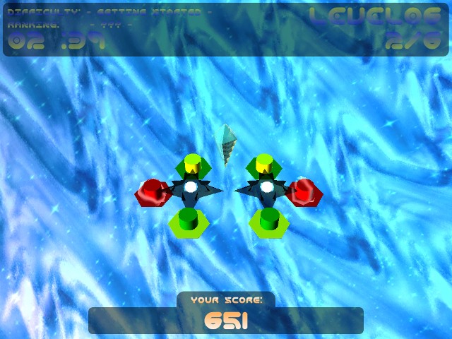 Bei diesem kniffligen Spiel gilt es, verschiedenfarbige Steine auf ihre gleichfarbigen Ziele zu befördern. Dazu dienen 4-armige Sterne, die pro Klick um 90° gedreht werden können. Insgesamt gibt es 66 Levels mit langsam steigendem Schwierigkeitsgrad. Ehrlich gesagt glaube ich nicht, dass es irgendjemand gibt, der tatsächlich alle löst, aber ich lasse mich gern vom Gegenteil überzeugen!