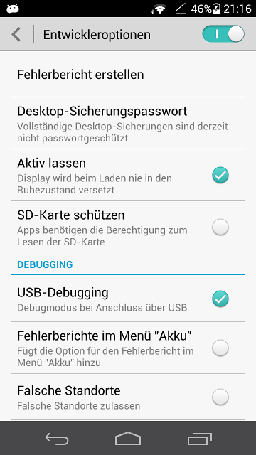Stelle bei deinem Androidgerät die "Entwickleroptionen" ein und schalte "USB Debugging" ein, diese Optionen findest du normalerweise unter den Einstellungen. Bild 3